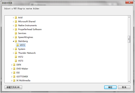 在VST Plug-In Custom Folder那行点Browse,选择文件夹